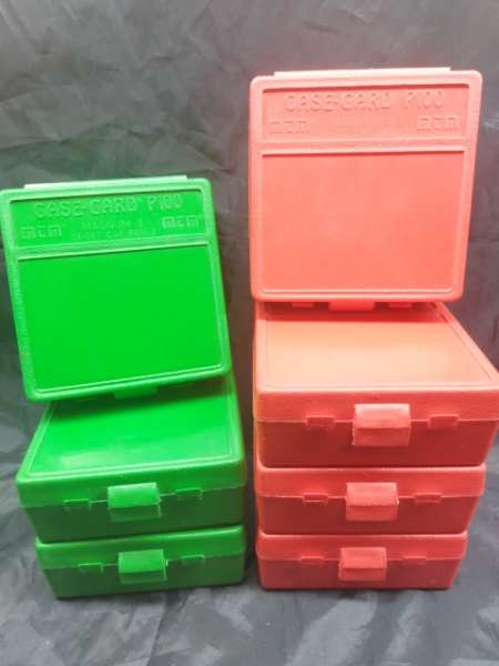 Biete 7 St. MTM CASE-GARD P 100 Patronen Boxen für .357 Mag. und.38 Spezial an.4xRot und 3xGrün. Die Boxen sind gebraucht, aber in einem guten Zustand. Siehe Bild, dass Teil der Artikelbeschreibung ist. Der versicherte Versand erfolgt mit Hermes innerhalb Deutschlands (ohne Inseln) für 5,49 €.