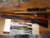 Ausserdem ist ein Okta 4x32 Zielfernrohr montiert, Befestigungsmöglichkeiten für eine offene Visierung ist vorhanden. Der Jubiläumsschaft weist nur leichte Gebrauchsspuren auf im gekennzeichneten Bereich ist ein Sprung der aber fest ist.