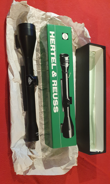 Zum Verkauf steht dieses seltene Sammler- Zielfernrohr von Hertel und Reuss aus Kassel, in der Ausführung 6x46 mit dem seltenen Absehen4! Der Mittelrohrkörper Durchmesser beträgt 26mm und die Gesamtlänge ca.325mm. In absolutem Neuzustand, war nie montiert. Es hat einen Alu Rohrkörper mit 70° Außenprisma und mit der außergewöhnlichen Höhen und Seiten Verstellung im oberen Turm. Im seitlichen Turm ist eine separate Scharf- Einstellung. Zu der damaligen Zeit etwas ganz besonderes. Das ZF ist in der Original Verpackung und die Linsen sind ohne jeden Makel. Für Fragen stehe ich gerne zur Verfügung und weitere Bilder können bei Bedarf angefordert werden. Keine Rücknahme, Garantie, Nachverhandlung oder Gewährleistung, da Privat Verkauf. Die Versandkosten ins Ausland bitte vor Auktionsende erfragen.