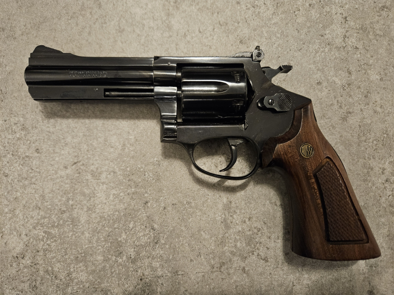 Zum Verkauf kommt ein Double-Action/Single-Action Revolver des Herstellers Rossi im Kaliber .357Mag wie auf den Fotos dargestellt. Es handelt sich um das Modell 971. Die Waffe befindet sich in einem guten Zustand. Die Lauflänge beträgt 4 Zoll. Der Revolver kommt mit einer 6-Schuss Trommel sowie verstellbarer Kimme und einem Holzgriff daher. Bei Fragen gern eine kurze E-Mail. Viel Spaß beim Bieten.