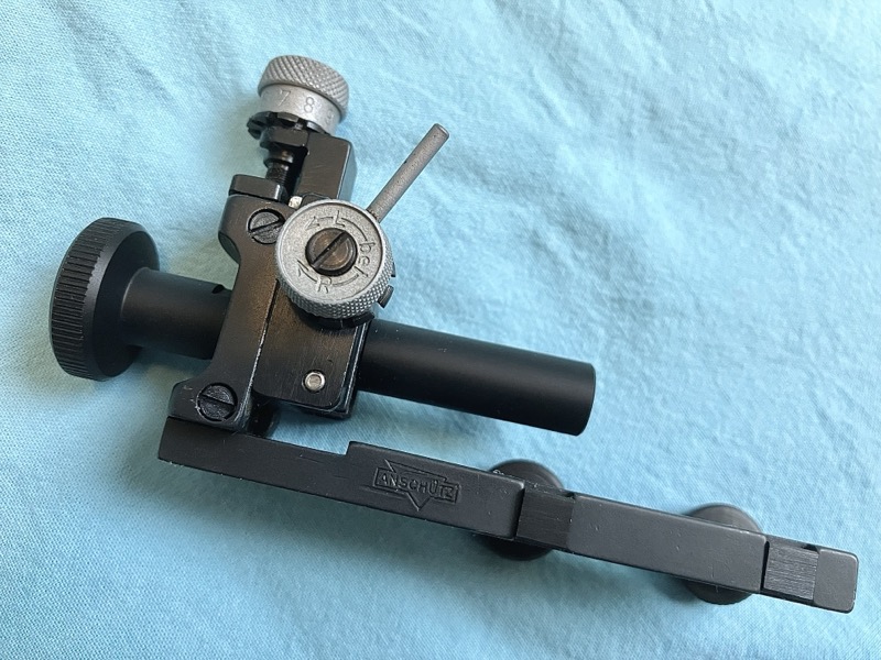 Älterer gut erhaltener Anschütz Match-Diopter mit Gegenlichtblende.