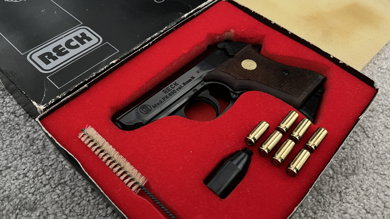 Reck PK-800 von 1982. Alte PTB 196. Baugleich wie scharfe Reck PK cal. 7.65 (So von außen nicht sichtbar). Mit Stahllauf.