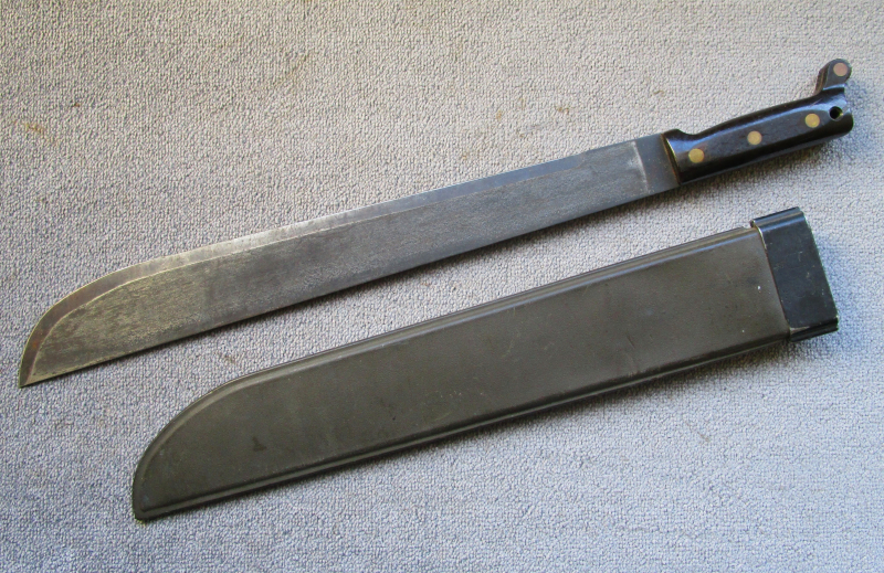 Biete hier diese originale US-Militär Machete mit Scheide an, hergestellt von der „Clyde Cutlery Company“ im Jahre 1962, robuste Stahlklinge mit stabiler grüner Kunststoff-Scheide, Gesamtlänge: 61cm, Klingenlänge: 46cm, mit vernieteten dunkelbraunen Kunststoff-Griffschalen, Klinge und Scheide mit diversen Stempelungen, siehe dazu bitte die Fotos, diese Militär-Macheten wurden für verschiedenste Aufgaben im Vietnam-Krieg eingesetzt, sehr guter Originalzustand, Fragen gerne per email, Auslandsversand bitte vorher erfragen, allen Bietern viel Erfolg !