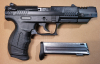 Sie bieten auf eine gute KK-Pistole Walther, Mod. P 22, mit dem kompletten Zubehör in der Original Waffenbox.