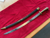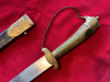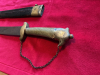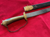 Aus Nachlass…..Jagdplaute vor 1800. Komplett mit original passender Scheide. Messinggarnitur. Knauf als Vogelkopf ausgearbeitet. Griff aus Bein oder Horn, mit kleiner Absplitterung. Wohl ehemals grün gefärbt. Kette magnetisch, also Eisen. Klinge etwas angelaufen, keine tiefen Rostnarben. Pandurenspitze. Etwas Ornamentika auf Klinge und Beschlägen. Gefäß minimal beweglich, dem Alter geschuldet…..Maße: Gesamtlänge ca. 75cm. Klinge ca. 56,5cm. Breite am Ansatz ca. 28mm, Stärke ca. 5mm. Siehe Bilder!! Schönes Stück und seltene Gelegenheit!