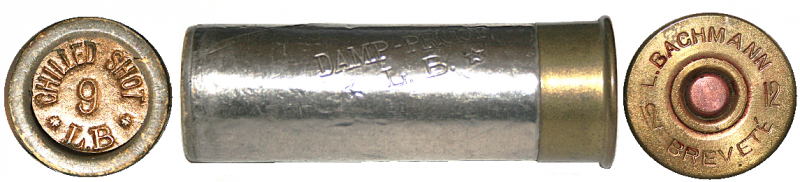 Sie bieten auf eine alte Schrotpatrone Kaliber 12 von Bachmann in Brüssel. Sie hat eine Hülse aus Zinnblech und ist mit 9mm Posten geladen. Weiteres siehe Fotos, sie zeigen die Patrone aus dieser Auktion. Privatverkauf aus Sammlungsauflösung.