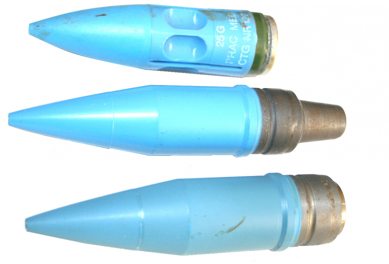 Wie mir von freundlichen egunnern mitgeteilt wurde, handelt es sich hierbei um eine 27 mm Granate und zwei im 25 mm Kaliber