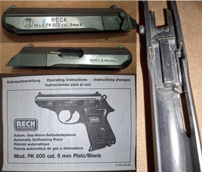 Zur Auktion kommt ein Reck PK800 - Schlitten bzw. Verschluss mit der PtB # 196.