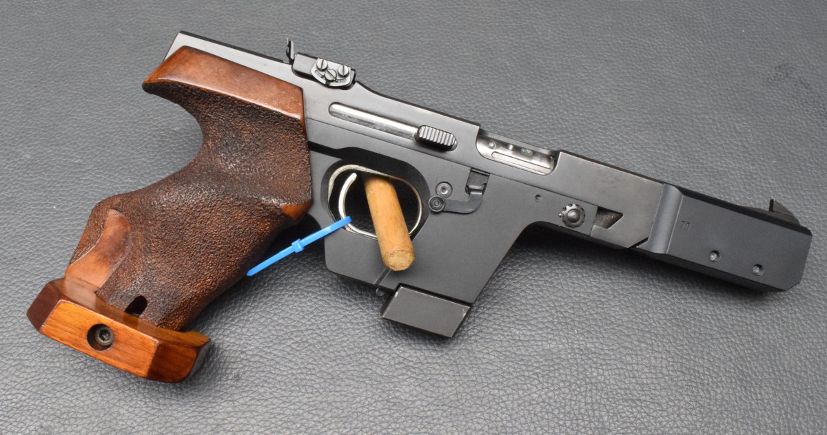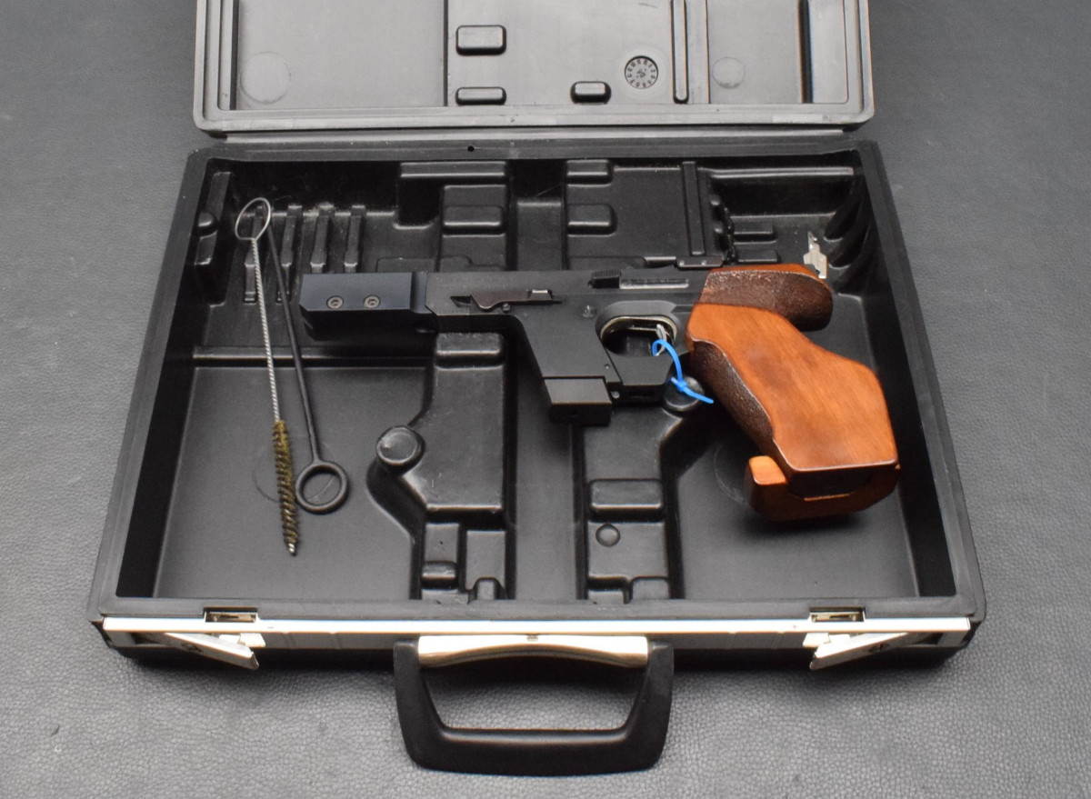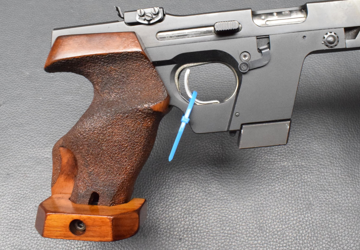 einstellbarer Matchabzug, herausnehmbares 5-Schuß Magazin. Matchgriff Gr. L (wechselbar) Lauf sehr gut, Brünierung 98% Gebrauchtwaffe, sehr gut