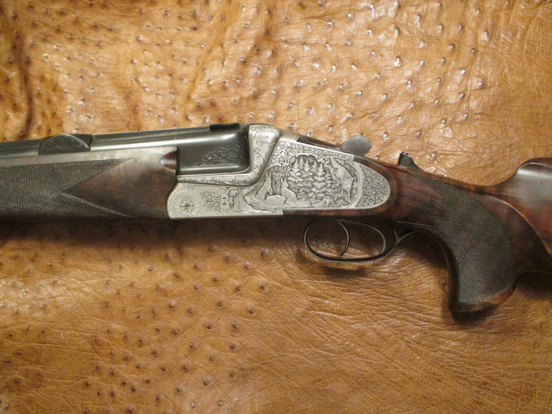 Aus Nachlaß. Heym Bockdrilling 35 in Luxus Ausführung mit von Hand herausnehmbaren Seitenschlossen. Kal. 9,3x74R 5,6x50R 16/70. Mündungsverstellung für kleine Kugellauf. Schaftmagazin. Alles mit Top Gravuren. Schaftlänge ca.36cm mit Schaft Verlägerung von Gernot Walther. heutiger Neupreis knapp. 30.000.- Waffe in einwandfreiem Zustand mit sehr guter Schußleistung. Werkseitig Schwenkmontage vorhanden. Waffe kann jederzeit besichtigt werden. Preis Verhandlungsbasis. da privatverkauf keine garantie oder rücknahme