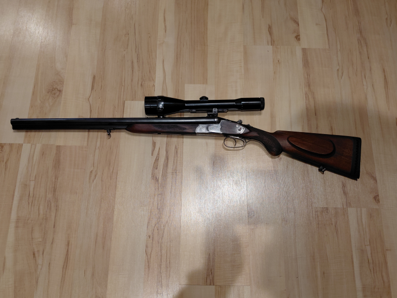 Hier bieten Sie auf einen der seltenen 8x57IRS Sauer Drillinge mit 16/70 Schrotläufen und einem lauflangen vorne seitlich in der Buchse zu verstellenden 22 Hornet Einstecklauf. Das Zeiss Diavari 2,5-10x52 besitzt das Absehen 11. Der Verschluss ist dicht und wackelt auch bei abgenommenem Vorderschaft nicht. Läufe sind spiegelblank. Einzigstes Manko, steht der Wahlschieber auf Schrot, löst der vordere Abzug nicht aus, wahrscheinlich ist da, meiner laienhaften Meinung nach, die Feder gebrochen, was aber jeder Büma schnell gewechselt haben sollte. Lauflänge des Drillings beträgt ca. 60cm und Schaftlänge bis Ende Schaftkappe ca. 36,5cm. Bei Fragen oder Preisvorschlägen bitte melden. Die angegebenen Versandkosten sind nicht die Tatsächlichen, da ich ja noch nicht weiß wo der Drilling hingeht. Sobald dies feststeht, teile ich dem Käufer die genauen Versandkosten mit. Käufer aus dem Ausland nennen mir bitte ein deutsches Versandunternehmen welches den Versand ins Ausland komplett abwickelt. Der Drilling kann auch bei mir abgeholt und besichtigt werden. Da Privatverkauf sind Garantie, Gewährleistung und sonstige Ansprüche ausgeschlossen. Ich wünsche viel Spaß beim Bieten!
