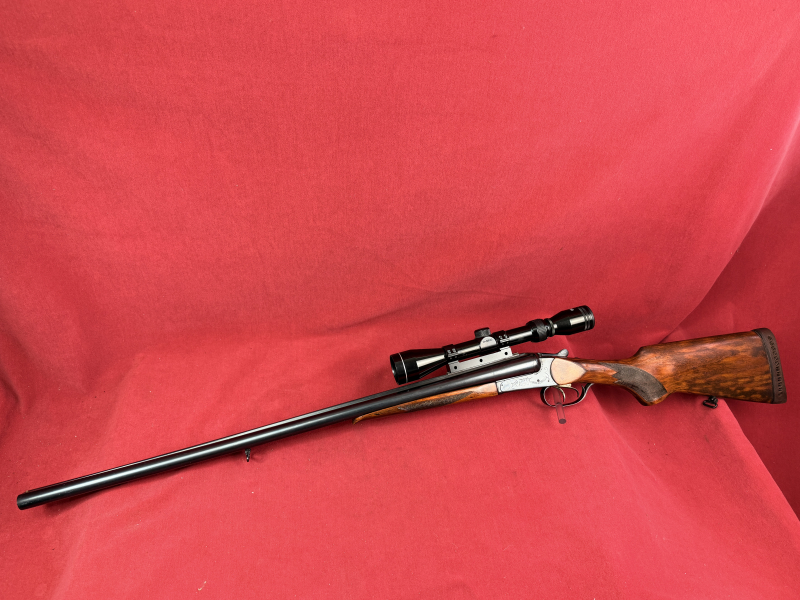 Es handelt sich hier um eine Doppelflinte der Firma Baikal Mod.: Baku mit Zielfernrohr 3-9x40, cal: 12/70, sehr guter Zustand. Brünierung 100% Die Waffe ist gerade und somit auch für Linksschützen sehr Gut geeignet.
