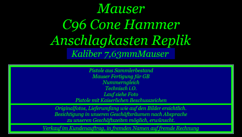 Informationen im Rahmen der neuen Produktsicherheitsverordnung: Bei der angebotenen Ware handelt es sich um eine gebrauchte Waffe, die einen historischen Wert als Sammlerstück hat und zudem als Antiquität zu bezeichnen ist. Entsprechend der Ziff. 18 der VERORDNUNG (EU) 2023/988 DES EUROPÄISCHEN PARLAMENTS UND DES RATES vom 10. Mai 2023 über die allgemeine Produktsicherheit, zur Änderung der Verordnung (EU) Nr. 1025/2012 des Europäischen Parlaments und des Rates und der Richtlinie (EU) 2020/1828 des Europäischen Parlaments und des Rates sowie zur Aufhebung der Richtlinie 2001/95/EG des Europäischen Parlaments und des Rates und der Richtlinie 87/357/EWG des Rates" ist diese Verordnung auf dieses Sammlerstück nicht anwendbar.