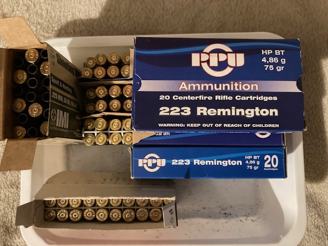 Hallo! Auktion für Schützenkamerad. Sie bieten auf 150 Stück .223Rem.-Hülsen von der Firma " PPU, S&B u. IMI ". Die Hülsen sind aus Messing mit Boxerzündung sie sind nicht bearbeitet oder gereinigt so wie sie vom Stand kommen. 100St. sind PPU 30St. sind IMI 20ST. S&B in ihren Verpackungen so wie auf dem Bild zu sehen. Es sind noch weitere Hülsen und Kaliber vorhanden. Kein Versand ins Ausland nur an Inlandsanschriften. Da Privatverkauf keine Garantie, Rücknahme oder Nachverhandeln. Viel Erfolg beim bieten.