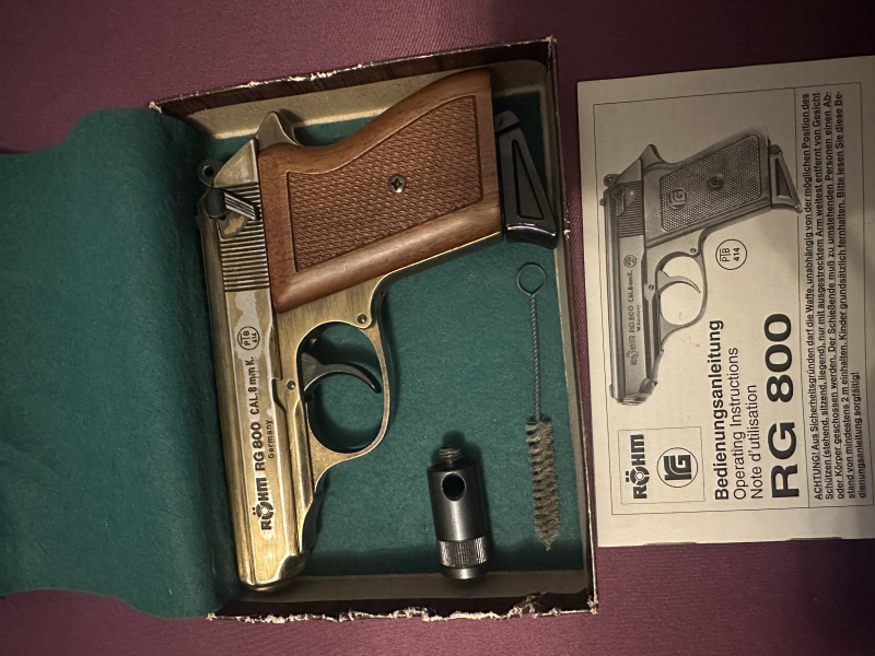 Zum Verkauf steht hier meine Röhm RG 800 Schreckschusspistole. Die Pistole ist 32 Jahre alt, aus original Röhm Fertigung und befindet sich in einem einwandfreien Top Zustand wie auf den Bildern zu sehen!