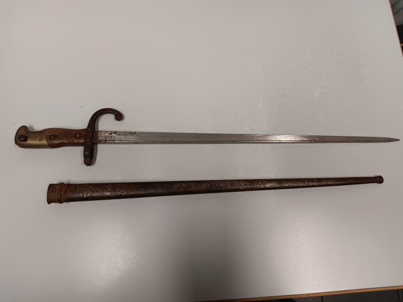Originales Bajonett. Scheide hat ein kleines Rostloch, siehe Bild. Keine Garantie oder Rücknahme da Privatverkauf. Zustand siehe Bilder.