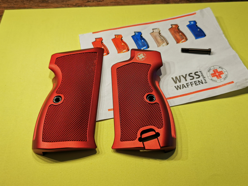 seltene Aluminium Griffschalen für die Pistole SIG 210 ( Rot eloxiert ). Hersteller ist Wyss aus Burgdorf.