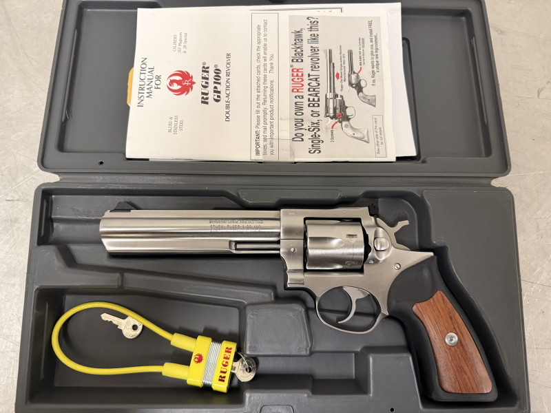 Zum Verkauf steht ein Revolver Ruger GP100 im Kaliber .357 Magnum und .38 Special. Die Waffe hat keine Gebrauchsspuren und wurde nur selten benutzt.