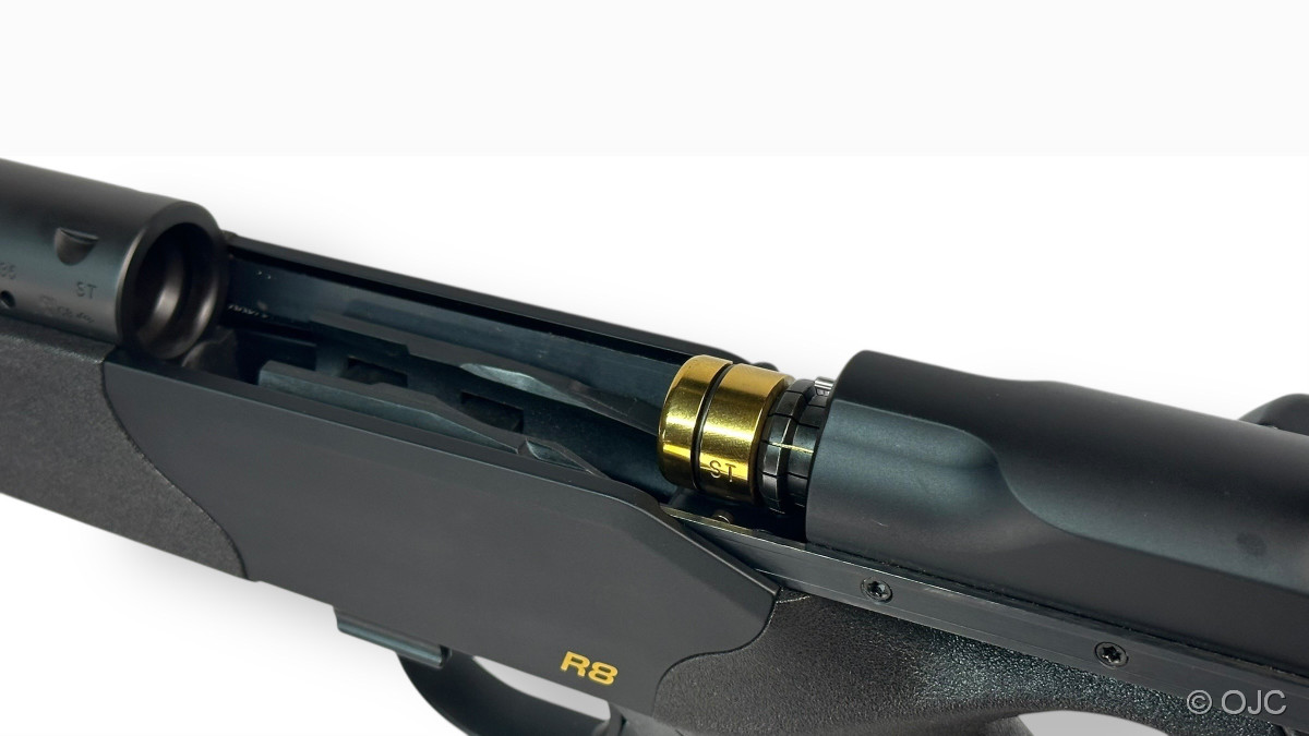 Diese R8 Ultimate ist mit einem kannelierten, 65cm langen Jagdmatch-Lauf sowie einer goldfarbenen, titannitrierten Verriegelungskammer ausgerüstet. Während der Vorderschaft sowie der Pistolengriff mit den gewohnten Soft-Touch-Einlagen für besten Grip versehen sind, so ist der Schaftrücken mit einer Ledereinlage in "Cocoa braun" ausgestattet. Natürlich inklusive Magazineinsatz, Handbuch und Schlüssel!