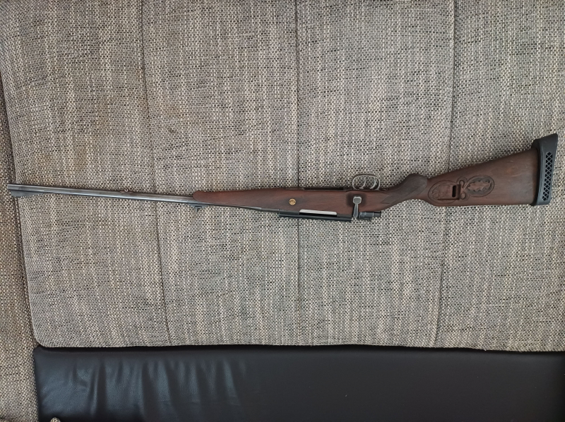 Hier wird auf einen wsl. K98 Repertierbüchse geboten im Kaliber 243 Winchester mit 58,5 cm Lauflänge, Schaftlänge 36cm.