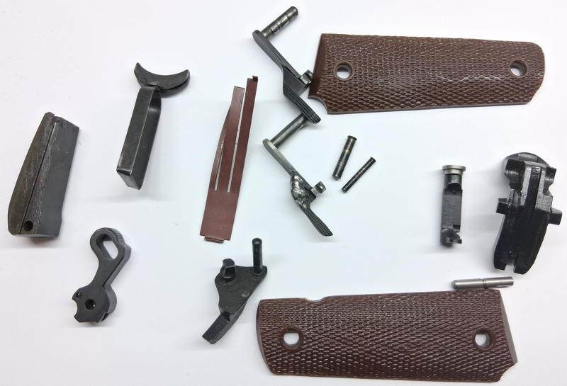 Angeboten ist ein Konvolut Ersatzteile Kleinteile für Pistole 1911 cal. .45 Auto.