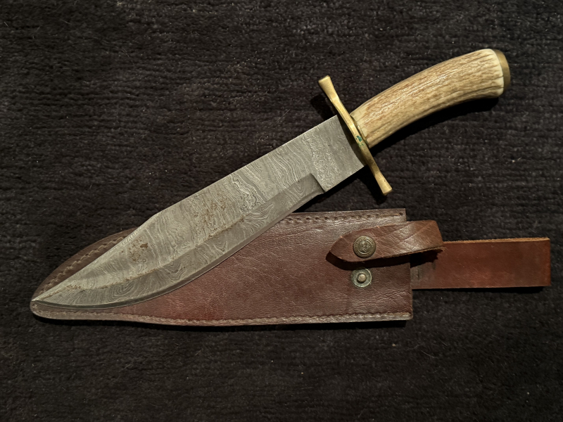 Messer mit Lederscheide, Klingenlänge 24cm, Damast,