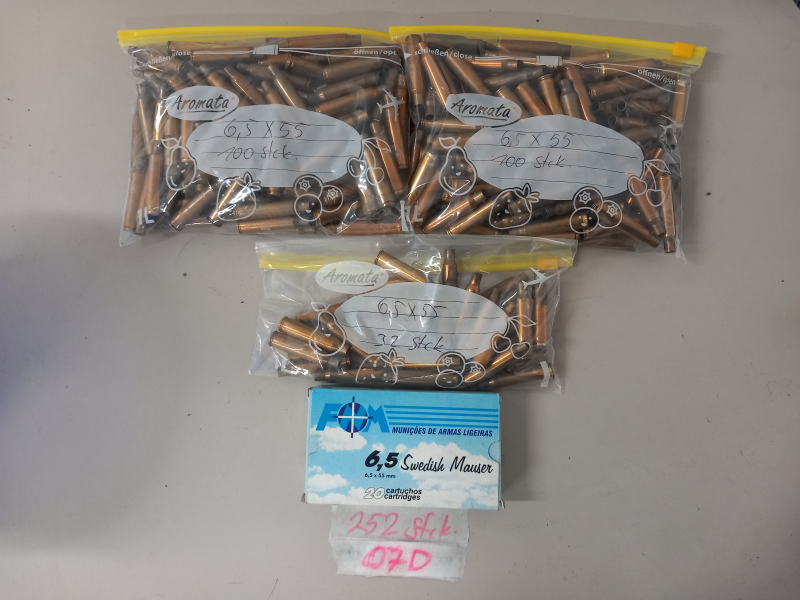 Hier bieten sie auf einmal geschossener 6,5x55 mm Hülsen 252 Stück