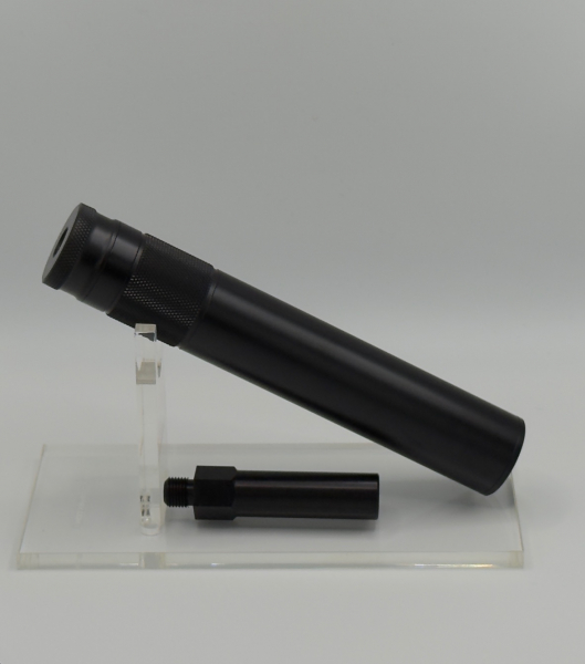 Der Schalldämpferadapter hat ein halbzoll Gewinde und wird mit dem serienmäßigen Mündungsfeuerdämpfer der MPX ausgetauscht.