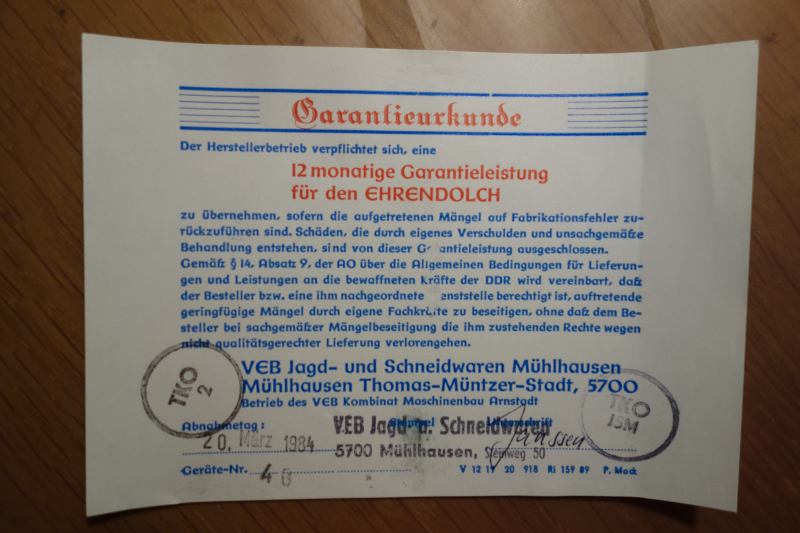 1 Ehrendolch DDR, Rarität, Geräte Nr. 40 und Abnahmestempel, mit Klingeninschrift