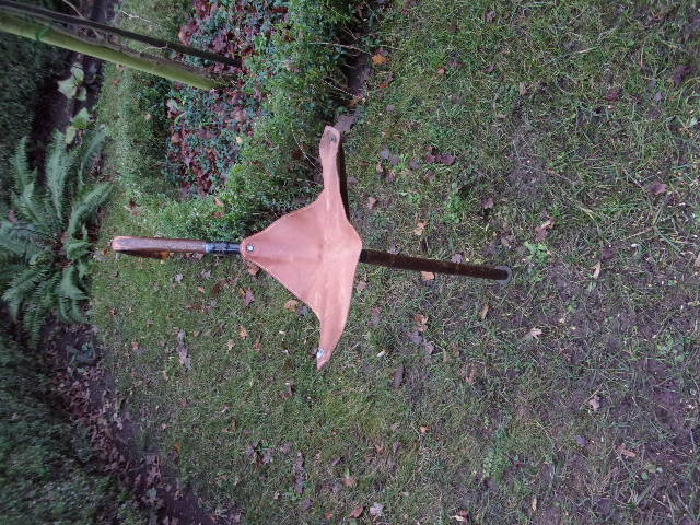 Traditioneller Jagdsitzstock, Vorkrieg, 101cm Gesamtlänge, 63cm Sitzhöhe, Nähte und Leder unbeschädigt, Scharniere gängig, stabiler Holzschaft, insgesamt schöne altersgemäße Patina.