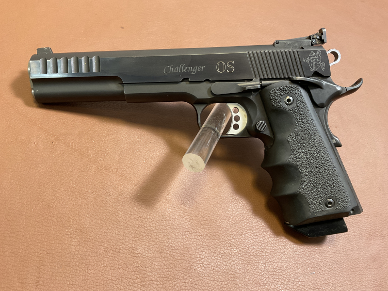 Zum Verkauf steht eine Pistole Nowlin Modell Challenger im Kaliber 9 mm Luger. Diese hochwertige Sportpistole verfügt über einen präzisen 6-Zoll-Lauf und ist für ambitionierte Schützen entwickelt worden. Die Waffe trägt die Seriennummer NM001994 und befindet sich in einem gepflegten Zustand mit leichten, üblichen Handhabungs- und Altersspuren. Ausstattung & Merkmale: • Modell: Nowlin Challenger