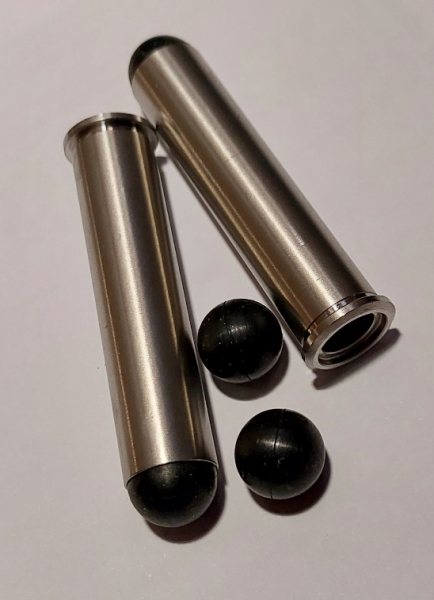 2 Stahlhülsen Kaliber 38 für 209 Zündhütchen CCI oder Cheddite, 42 mm lang inkl. 6 Gummikugeln 9 mm