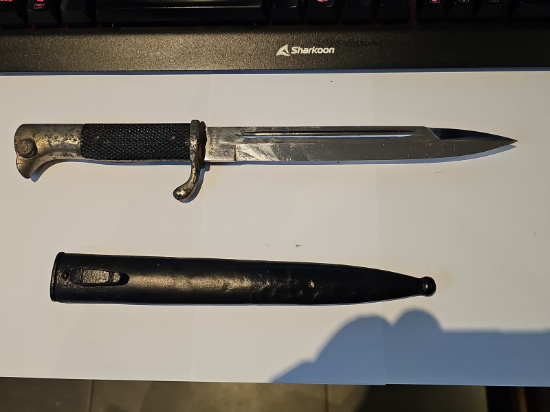 Extraseitengewehr / Ausgeseitengewehr der Wehrmacht aus dem 2. Weltkrieg. Klinge ist Top! Leider hat der Griff auf einer Seite gelitten (s. Bilder)