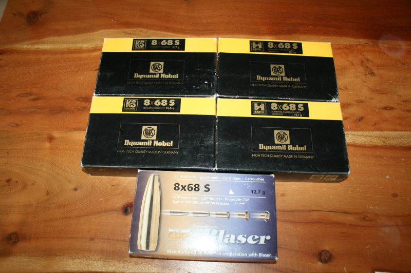 Zum Verkauf kommen 5 Pakete (100 Schuss) RWS und Blaser im Kaliber 8x68S