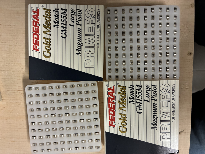 Zum Verkauf stehen 200 Stück Zündhütchen der Marke Federal Gold Medal Large Magnum Pistol.