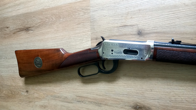 Biete Unterhebel Rep.Büchse Winchester Mod. 94 Commemorative Wells Fargo Kal.30-30 Win. USA-Fertigung. Lauflänge 20 Zoll. Neusilber Systemkasten mit aufwendiger Gravur versehen. Schußbelastung 30 Schuß, daher neuwertig. Zu erwerben auf Gelbe WBK. Als Privatverkäufer schließe ich jegliche Gewährleistung aus! Verkauf u. Versand nur innerhalb Deutschland! Bei Abholung gebe ich noch 20 Schuß Kal.30-30 dazu.