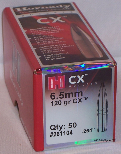Geschossform: CX - (Blei- und splitterfreies Deformationsgeschoss aus Tombak)