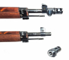 Auf dem Patronenlager oben, „SA“ im Quadrat, Besitzmarke für die finnische Armee. Darunter „VKT“ in Sechseck. Unter der S/N die Jahreszahl „1942“.