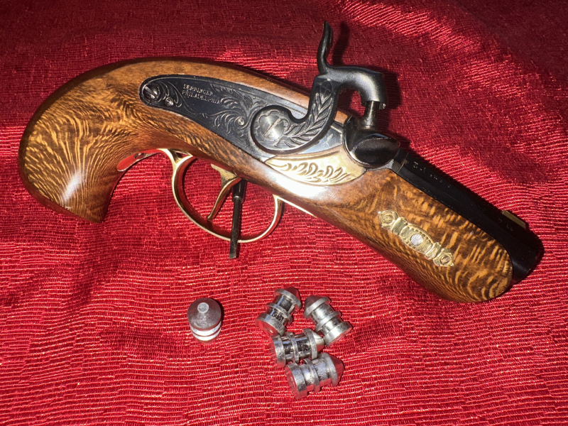 Aus VL-Sammlung die Gelegenheit!Kleiner,führiger Deringer,sehr beliebt damals wegen der verdeckten Tragezeiten von nur 20 cm und vor allem mächtigem .45-er Caliber!Richtige Handkanone,Tascheblitz...sehr hochwertig verarbeitet,massiver ,gezogener Lauf mit scharfen Zügen,staatlich beschossen,Bunthärtung usw..Wird so leider nicht mehr gebaut!Originaler,schöner Zustand ,wie aus dem Laden,ungeschossen wie aus den Bildern ersichtlich,die Bilder als Beschreibung beachten.Von privat ab 1€ ohne Rücknahme.Erwerb&Besitz frei ab 18.EU-Ausland Versandkosten 20€.
