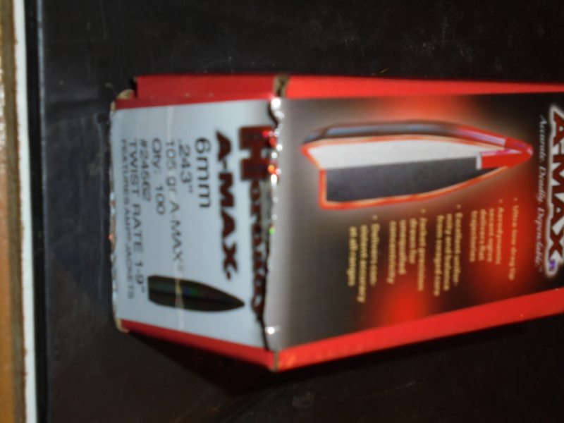 Sie bieten auf eine Packung Geschosse von Hornady. A-Max 105 gr 100 Stück im verschweisstem Beutel. Kaliber 6mm /.243. Geeignet für Scheibe oder auch Jagd s. Buch von Albrecht.