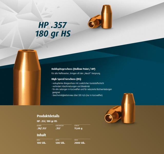 H&N Geschosse .357 HP HS 180gr. 500St.