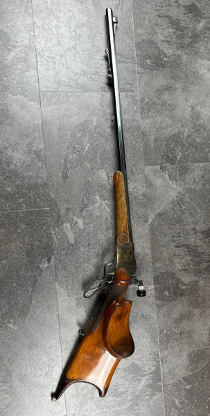 Zimmerstutzen 4mm RZ im klassischen Stil, mit Tiroler Backe und Daumenauflage, Stiegele Ladesystem, Hersteller ist NORIS, mit Diopter und Feinkorn, schießt einwandfrei mit Kugel NR.12 und RWS Zünder, siehe Schußbild, voll funktionsfähig,