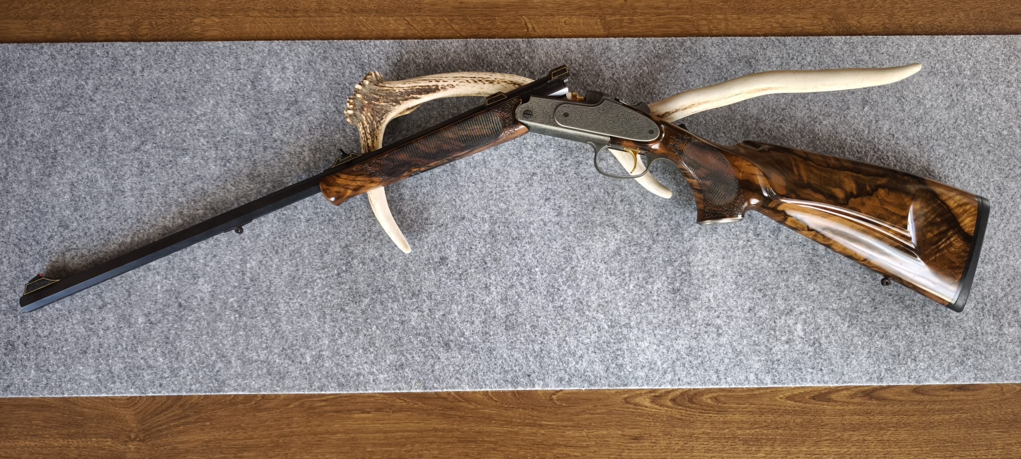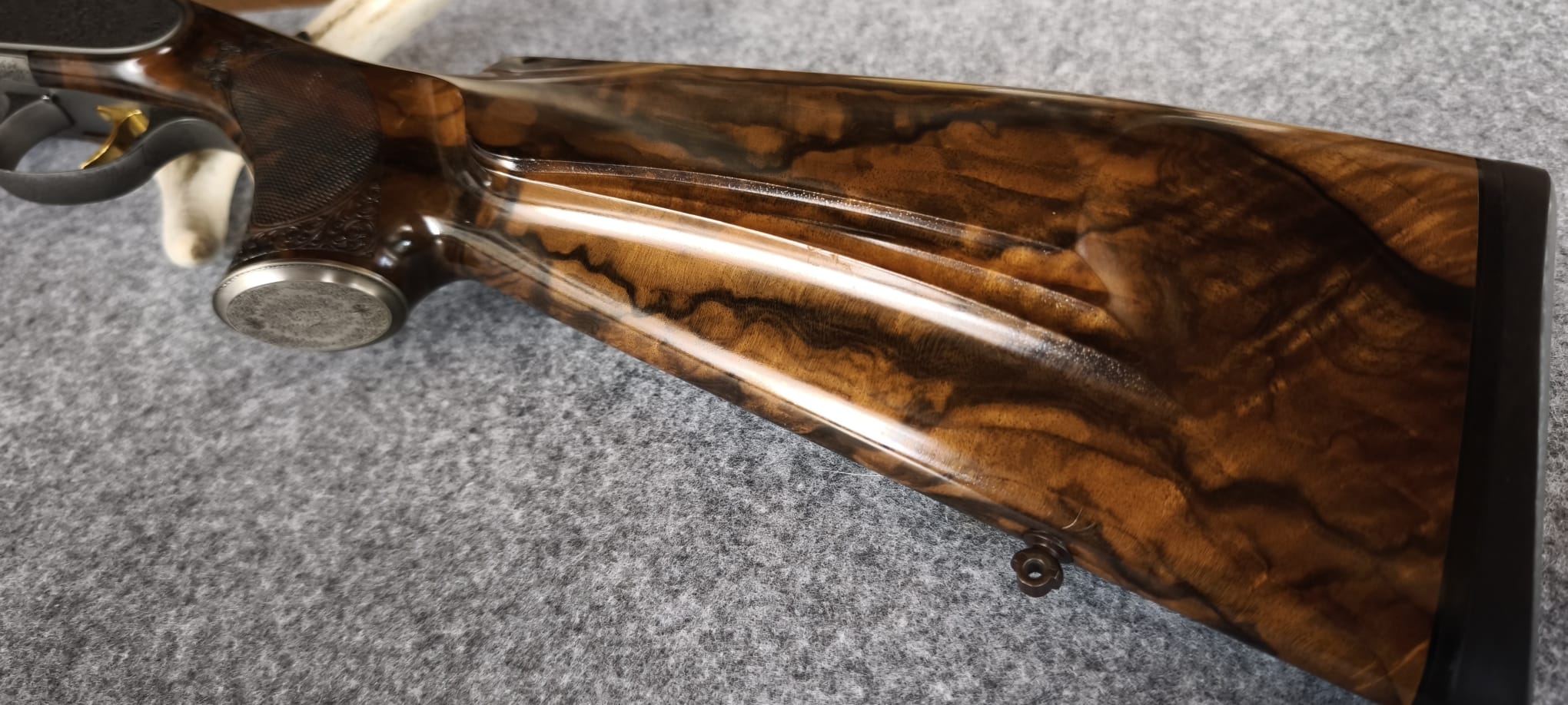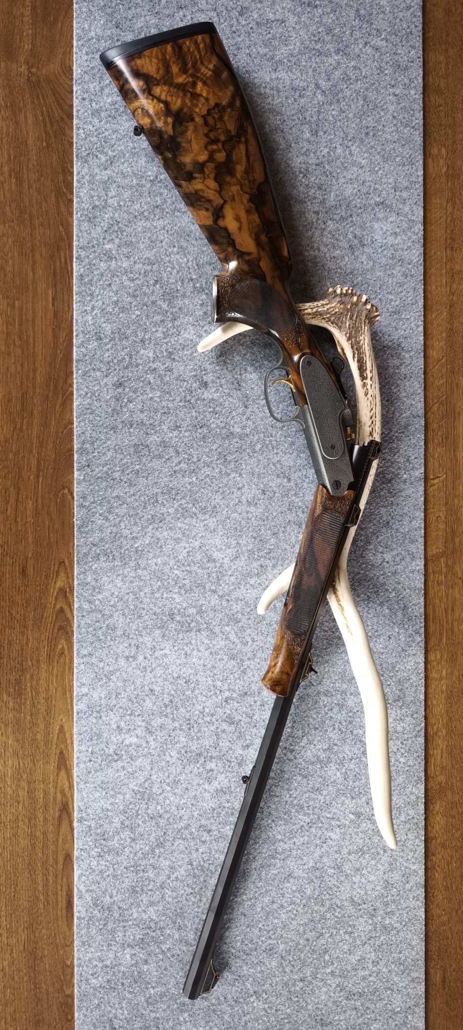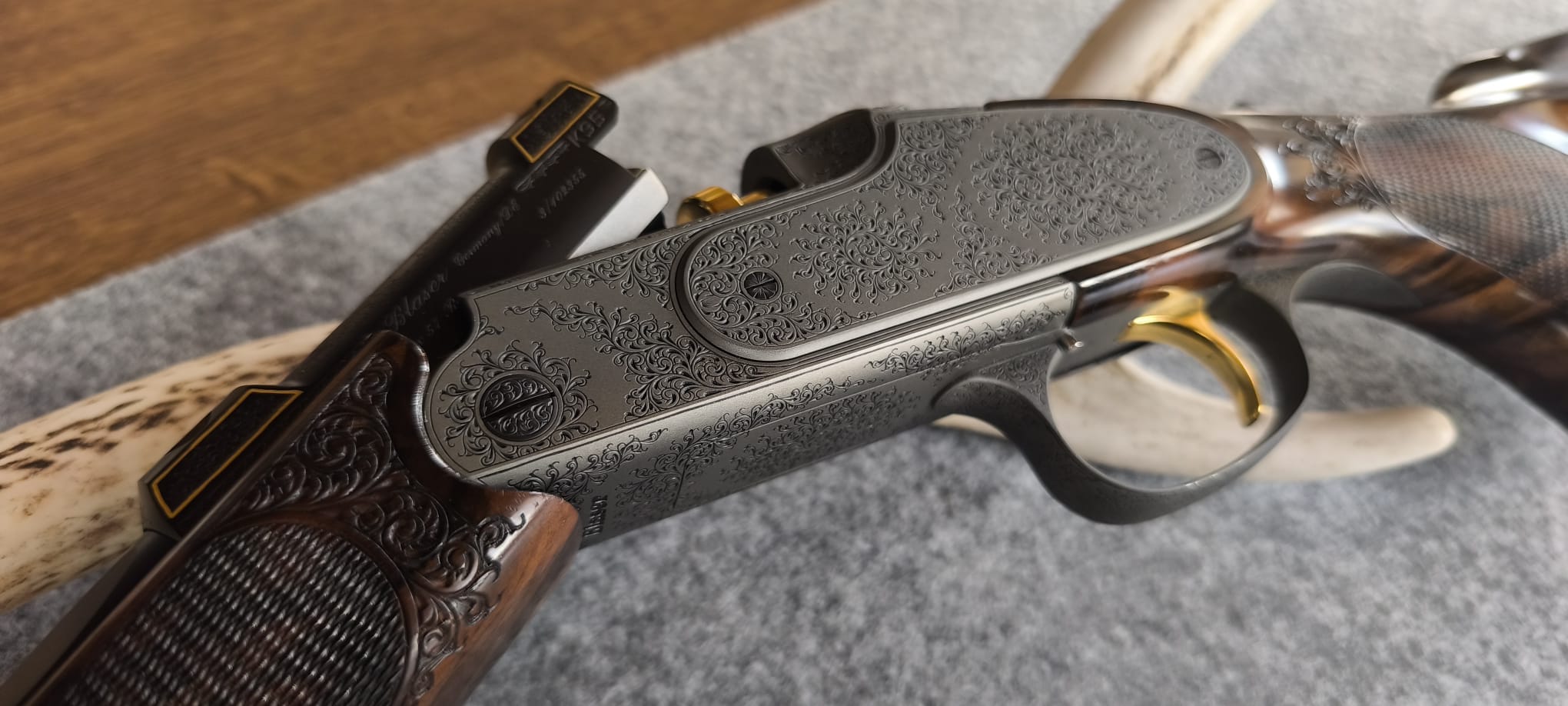 Sie steigern auf eine Blaser K95 aus dem Blaser Custom Shop. Die Waffe stammt so original aus dem Blaser Custom Shop und ist unverändert. Das Holz ist der Güteklasse 11. Die Waffe hat lange Seitenplatten mit Arabesken. Die feine Arabeskengravur ziert zudem den kompletten Systemkasten, den Abzugsbügel, das Pistolengriffkäppchen, die Laufwurzel sowie Kimme und Korn. Kimme und Korn sowie die Laufwurzel haben zudem Umrahmungen in Goldfäden. Der Abzug wie auch der Verschluss sind in Goldfarben. Das Kaliber ist 7x57R. Die Lauflänge ist 61 cm. Die Kipplaufbüchse ist mit 103 cm Gesamtlänge extrem führig und leicht. Lauf ist innen blank und die Züge / Felder sind scharf. Die Waffe wurde nie zur Jagd geführt und verbrachte leider die Zeit ausschließlich im Tresor. Eigentlich ist sie neu, da ich jedoch der Erstbesitzer bin bezeichne ich sie als neuwertig. Die K95 ist aktuell über ein Swarovski Z8i, 2-16x50P, einer original Blasersattelmontage und RWS (EvoGreen) eingeschossen (Zielfernrohr, Montage und ca. 60 Schuss Munition sind NICHT Bestandteil dieser Auktion, können jedoch separat erworben werden). Die Schussleistung ist Blaser typisch perfekt. Mit in der Auktion ist der original Blaser ABS Koffer in blauem Samt. Neupreis mittlerweile bei fast 22,5 TEuro. Schussbelastung ca. 20 Schuss. Ich versende über Kurier. Egun Kosten trage ich. Versandkosten Sie. Die Versandkosten beziehen sich auf innerdeutschen Versand. Verkauf ins Ausland gerne über einen Exporteur wie zB Waffen Bock. Es handelt sich um Privatverkauf mit Ausschluss der Gewährleistung und Garantie. Besichtigung möglich. Barzahlung bei Abholung ebenso möglich wie Überweisung mit anschließendem Versand mit Kurier. EWB erforderlich. Viel Spaß beim Steigern.