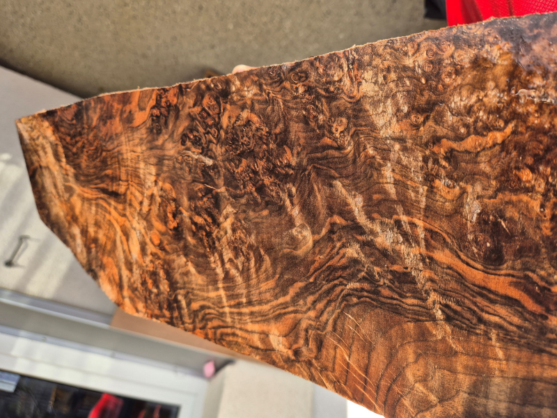 Sehr schöne volle Vogelaugen mit "Zick-Zack" Maserung aus dem Wurzelstock....Der Rohling hat einen sehr seltenen Art von der Maserung und dazu das Holz hell aber dagegen die Maserung sehr dunkel (schwarz) ist, somit ein sehr seltener und traumhafter Rohling.