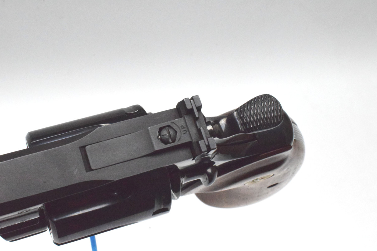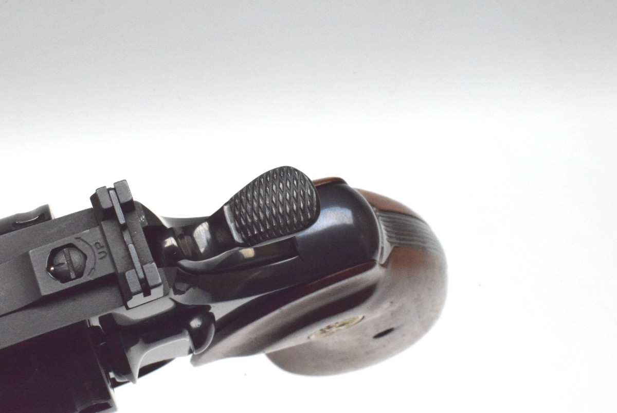 Lauf und Trommelbohrungen sehr gut, Brünierung 99% (kleiner punktueller Kratzer an der Brünierung am Lauf rechsseitig, kaum sichtbar)