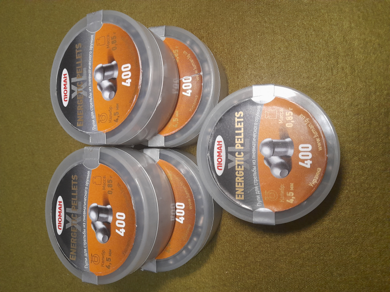 Zum Verkauf stehen 5 Dosen a 400 Stück Luman Energetic XL Rundkopf Diabolo im Kal. 4,5mm und 0,85g schwer. Die Dosen sind original versiegelt rest siehe Bild, was auch Bestandteil der Beschreibung ist.