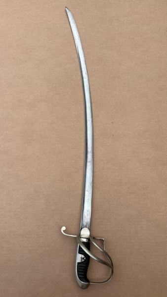 Preußischer Artilleriesäbel mit zwei Nebenspangen, Privates Feldwebelstück, Gesamtlänge: 97cm, Klingenlänge: 84cm, Klingenbreite: 3cm, Belederung und Wicklung Original, Ein Grifflappen etwas verschlagen