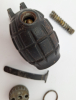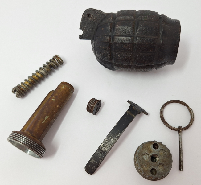 Sie bieten hier auf eine leere englische Mills Bomb Handgranate! Das gute Stück ist komplett zerlegbar und wirklich in einem sehr guten Zustand, siehe Bilder! Natürlich komplett leer und völlig ungefährlich!