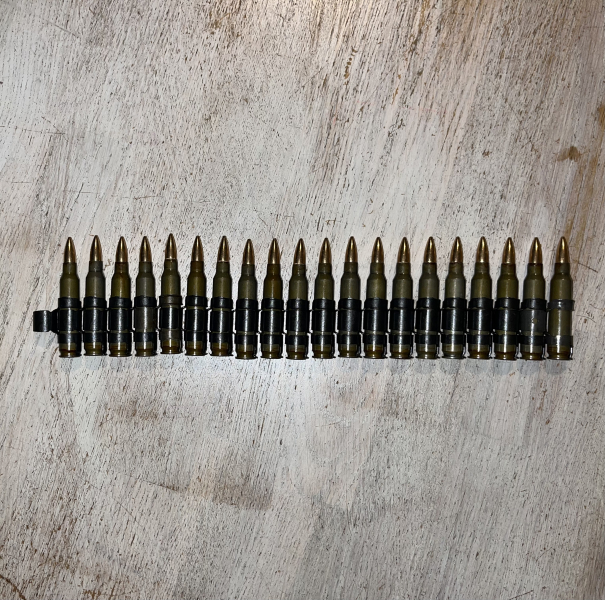 - 20 x .223 REM Dekohülsen auf passendem Zerfallgurt