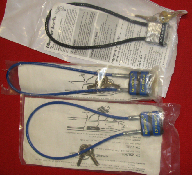 Zum Verkauf kommt 3mal Schloss / Seilschloss MOSSBERG / Master CABLELOCK je mit zwei Schlüssel
